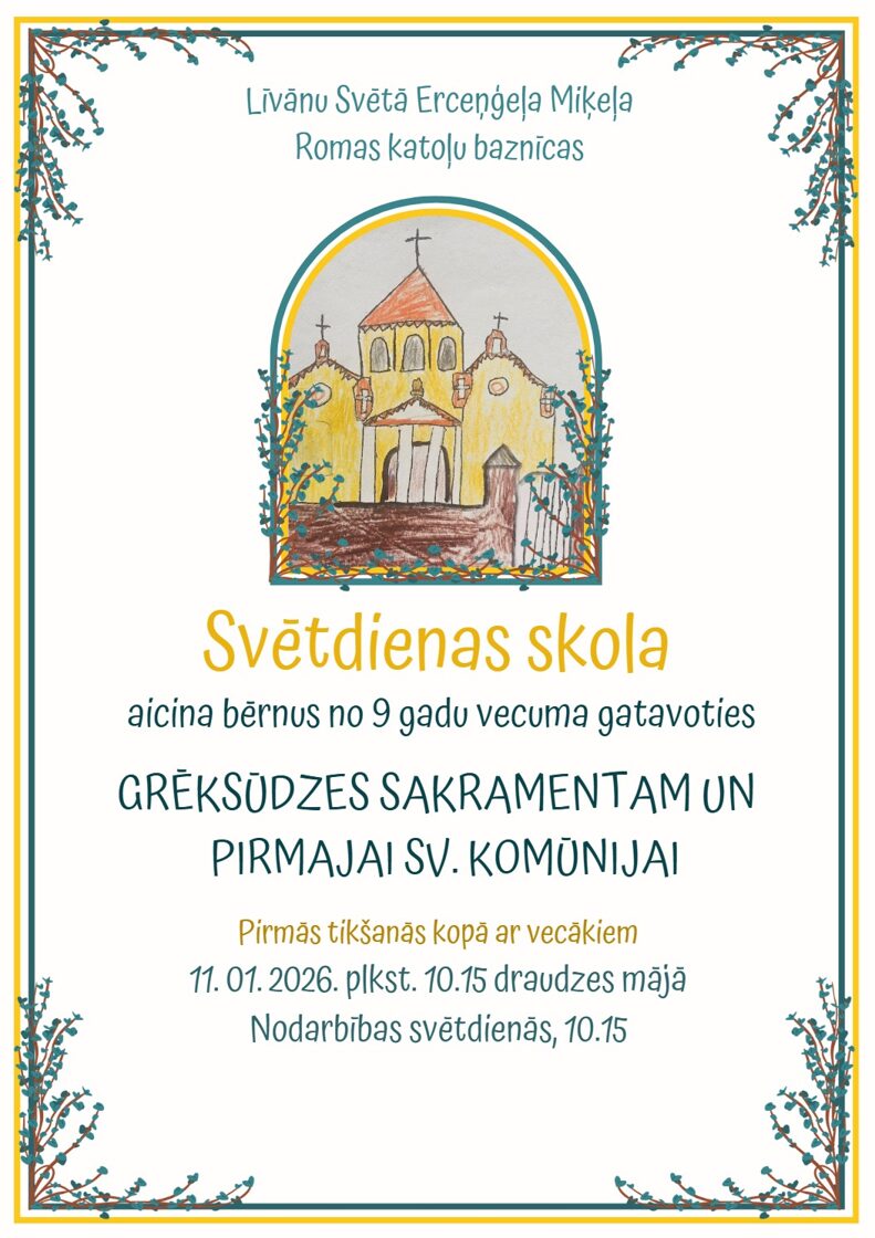 *Mēneša pirmajās piektdienās Vissvētākā Altāra Sakramenta adorācija plkst. 9.00,